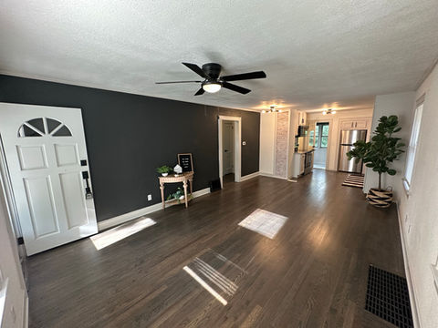 Full rehab - New Kitchen, new bathroom, new LVP and carpet floors, full paint inside and out, all new hardware/fixtures, new deck, landscaping, new roof and gutters, new HVAC system, all new plumbing and electrical.