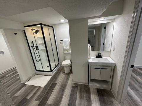 Mid level rehab - Epoxy refinish of countertops, refinish existing cabinets, new bathroom, new LVP and carpet floors, full paint inside and out, all new hardware/fixtures, New landscaping, deck refinish w/new handrails, all new plumbing and electrical.